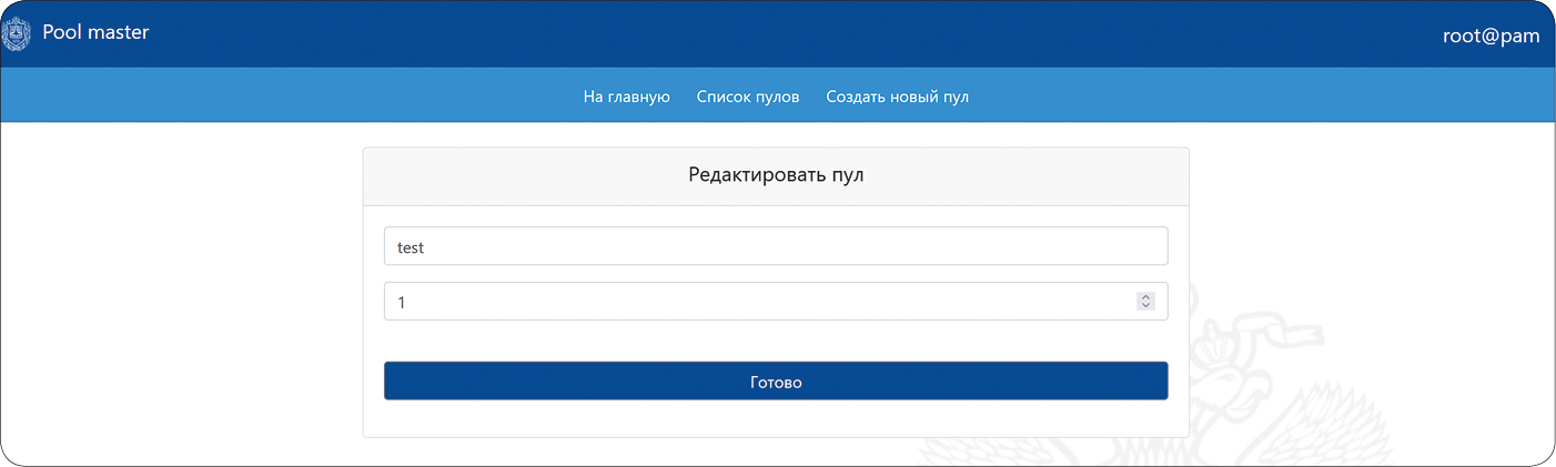Кнопка «Список пулов» переводит на страницу, содержащую перечень пулов. Здесь можно просмотреть их параметры, удалить, отправить на редактирование кнопкой «Редактировать» или же, нажав на имя пула, перейти к более подробной информации о нем.