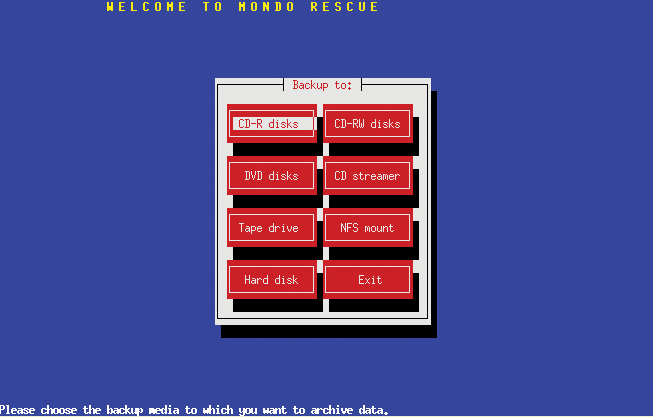 Mondo Rescue при архивировании данных имеет два режима работы: интерактивный и командный.