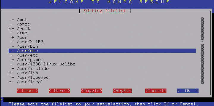 Все, теперь у нас в руках загрузочный СD-ROM, созданный под конкретную задачу и требования. При необходимости загружаемся с него и автоматически загружается программа Mondo Rescue, о которой пойдет речь чуть ниже. Если же с созданием образа что-то не получилось, то исчерпывающий ответ о причине можно получить в файле /var/log/mondo-archive.log, который разработчики просят прислать в случае обращения за помощью. Также для тех, у кого ничего не получилось, то можно найти уже готовые ISO-образы по ссылкам на сайте, с этих же образов можно установить полностью весь комплект программ, просто сначала примонтировав диск и затем зайдя на него, введя setup. Теперь можно, загрузившись с этого СD-ROM, провести спасательные работы по восстановлению системы. Но это еще не все.